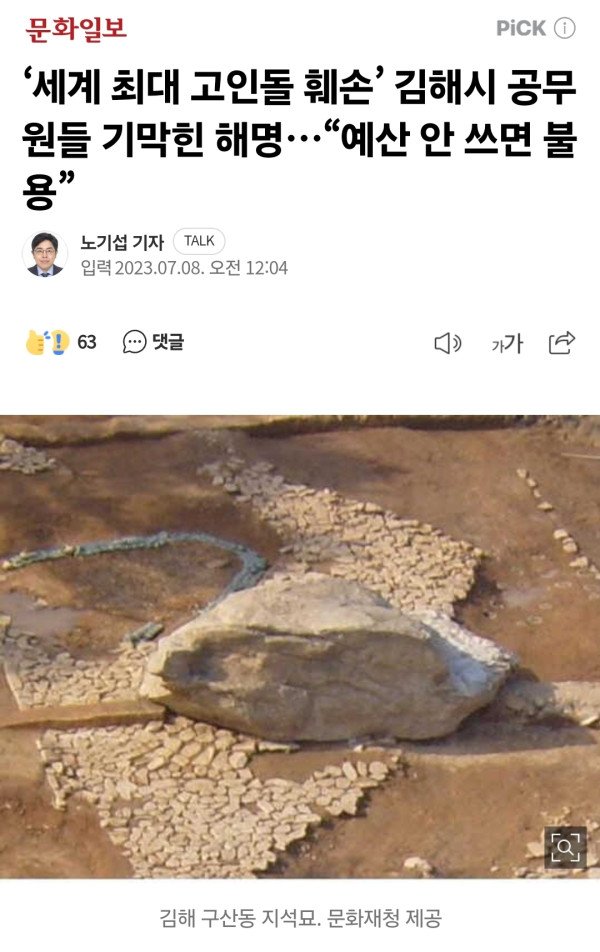 김해 지석묘 훼손사건은 불용예산 <- 이게 존나 문제인듯