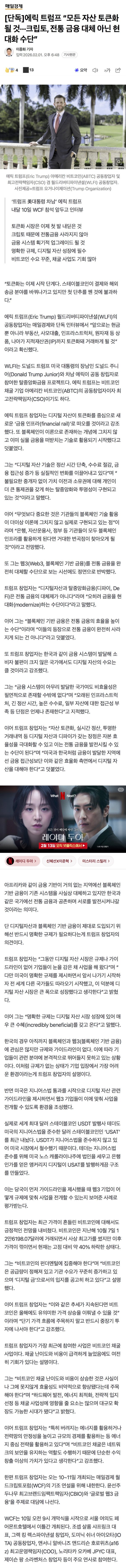 [단독] 에릭 트럼프 “모든 자산 토큰화 될 것“