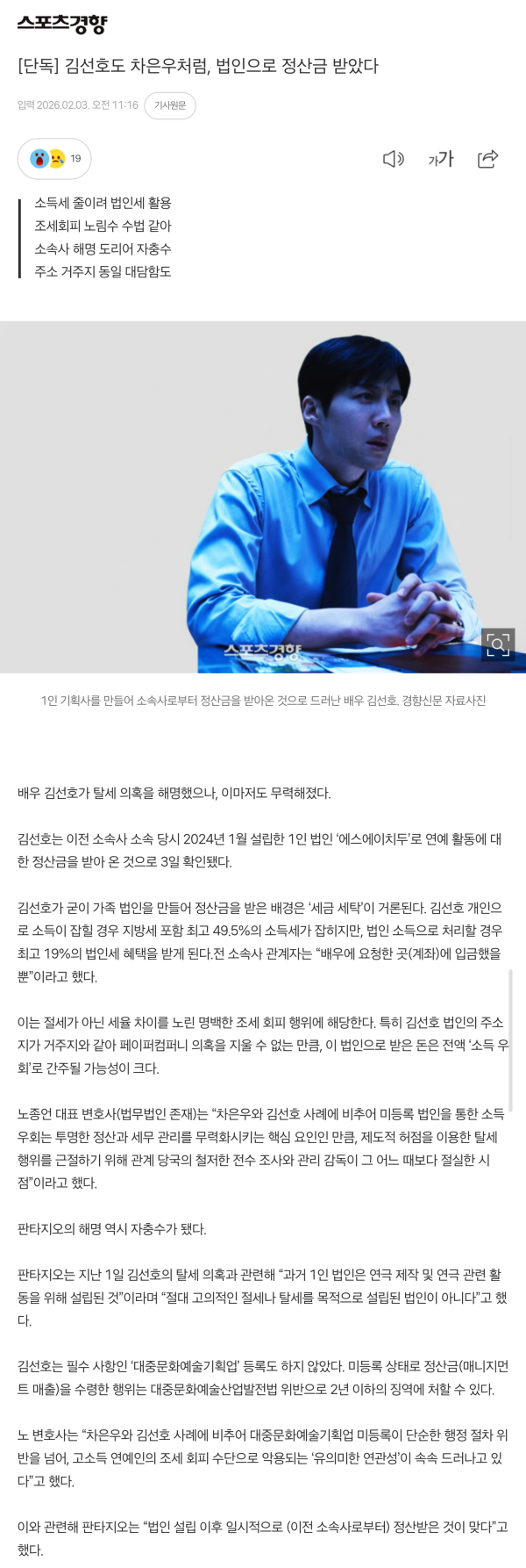 김선호, 탈세 해명하려다 횡령 자백한 꼴? 판타지오의 자충수