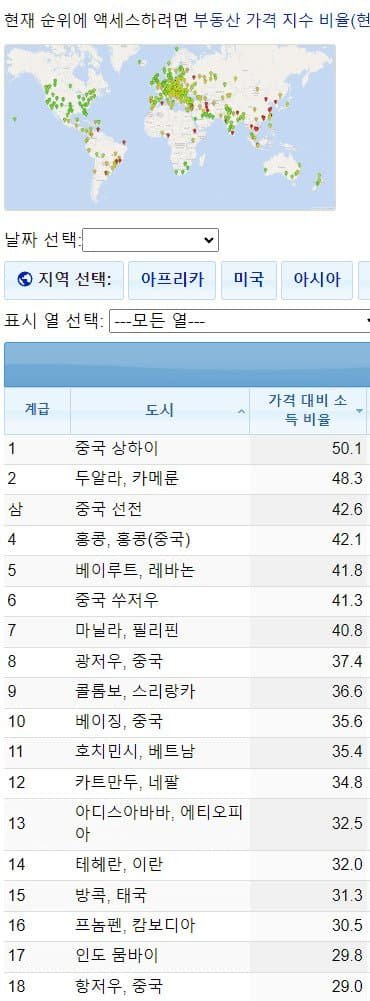 중국은 소득대비 집값(PIR)이 전세계 1위에다가