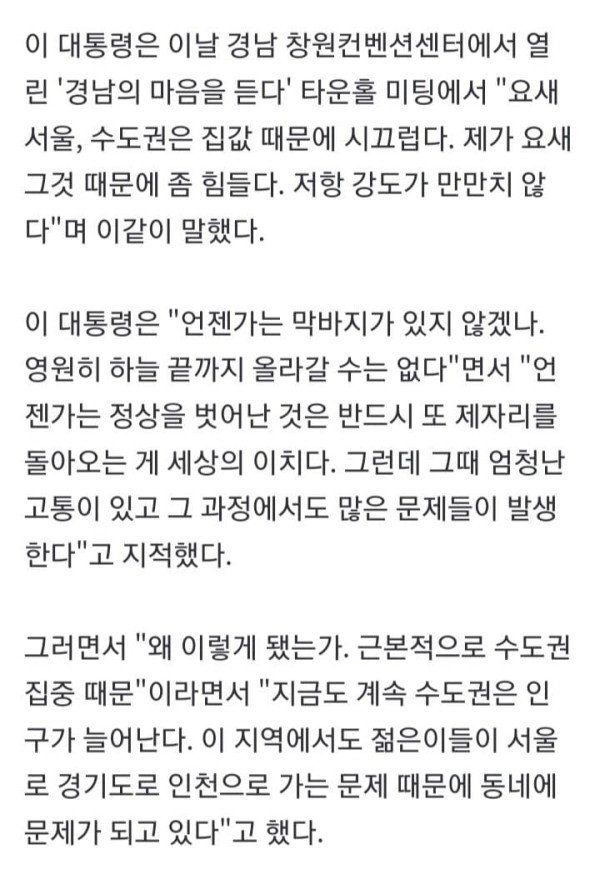 李대통령 "아파트 1평에 3억 말 되나…과거 일본처럼" 우려