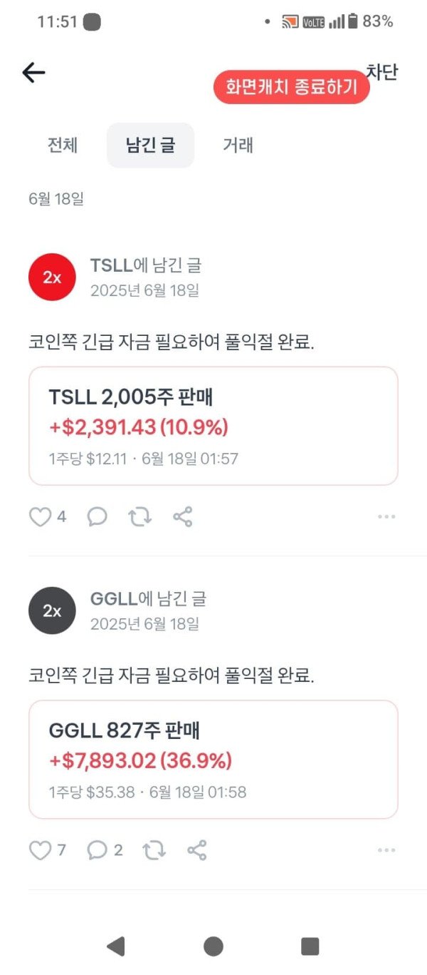 10월 11일 속슬로 1억이상 수익보고 전량매도