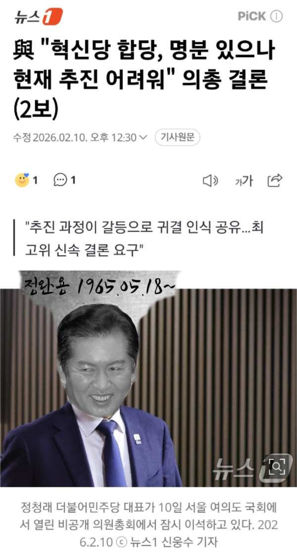 신재현 한재혁 기자 = 더불어민주당이 10일 조국혁신당과 합당과 관련해 열린 의원총회에서 지방선거 전 합당은 어렵다는 데 의견을 모았다. 정청래 대표는 의원총회에서 나온 의견들을 토대로 이날 저녁에 열릴 최고위원회의