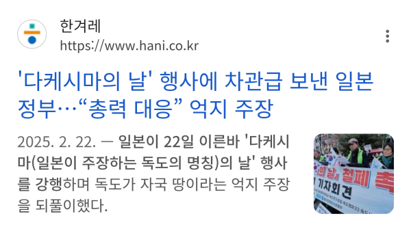 ‘다케시마의 날’ 각료(장관급) 참석 주장에 “눈치 볼 필요 없다” 라고 발언한 이력이 있음