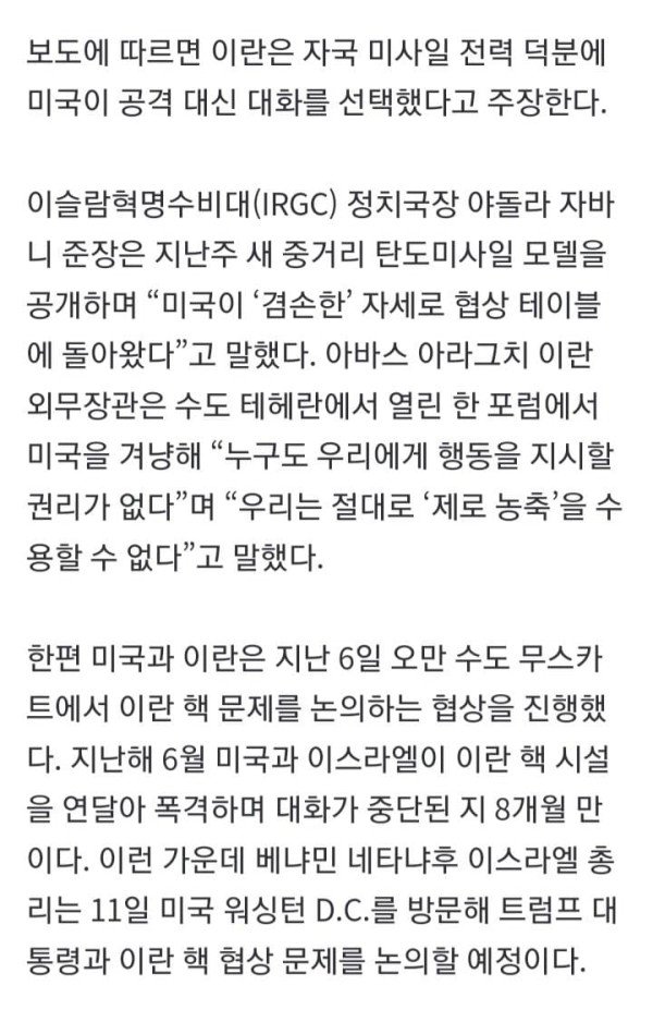 이란 외무 “美와 핵합의 가능…실패하면 전쟁”