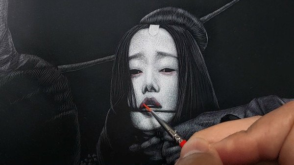 칼로 긁는 스크래치 기법 인물화(feat. 테크노 여전사)