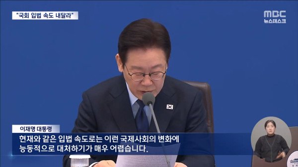 이 대통령은 이날 오전 청와대에서 열린 국무회의에서 "현재와 같은 입법 속도로는 이런 국제 사회의 변화에 능동적으로 대처하기가 매우 어렵다"며 이같이 말했습니다.