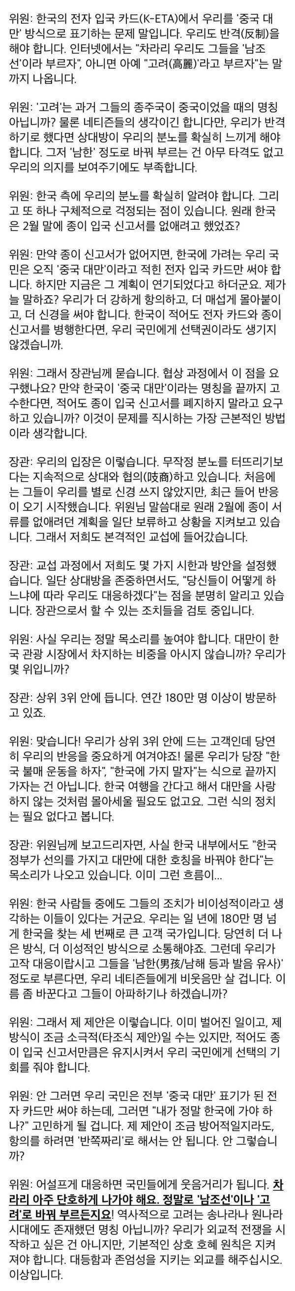 대만의원, “차라리 ‘남조선’이나 ‘고려’로 부르자”
