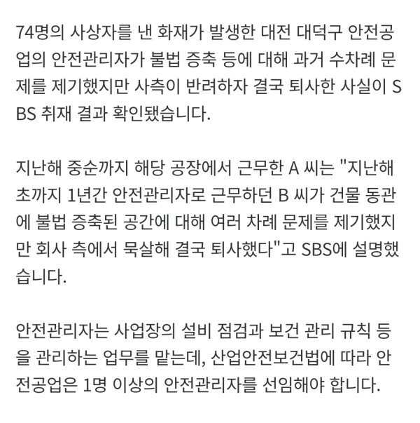[단독] "불법 증축 안 돼"…문제 제기한 '안전관리자' 퇴사