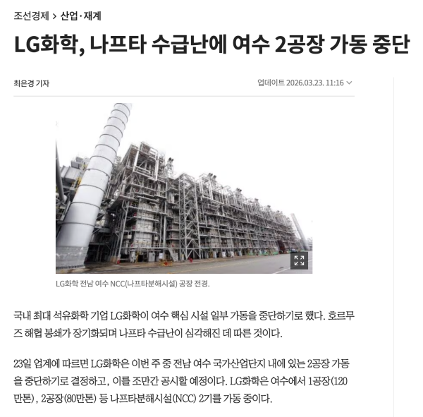 LG화학 공장 가동 중단 뜸 ㅈ됨