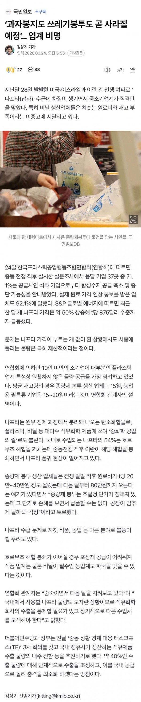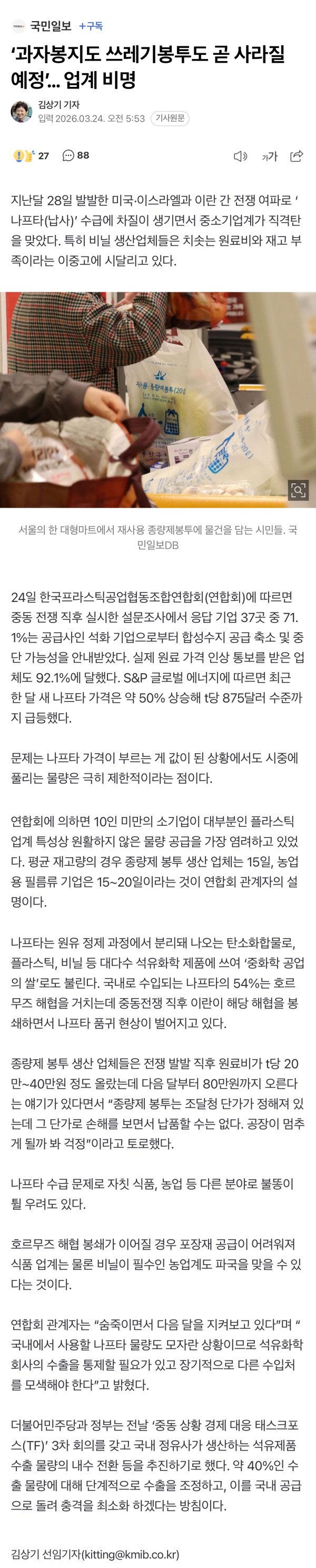 ‘과자봉지도 쓰레기봉투도 곧 사라질 예정’… 업계 비명