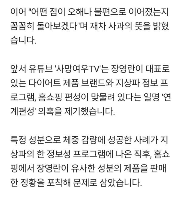 짜고 치는 홈소핑 연계 편성?'…사망여우 지적에 장영란 사과