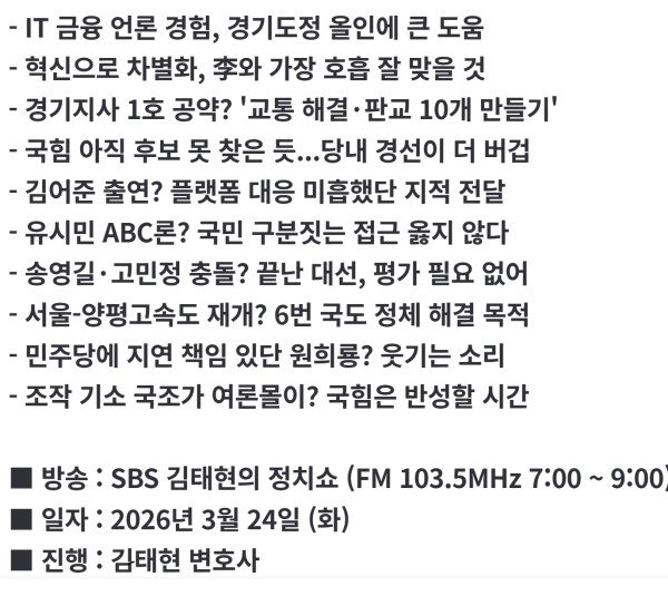 [정치쇼] 한준호 "유시민 '에이비씨론'? 국민 구분 짓기 안 돼…경기지사 경선, 결선서 역전할 것"