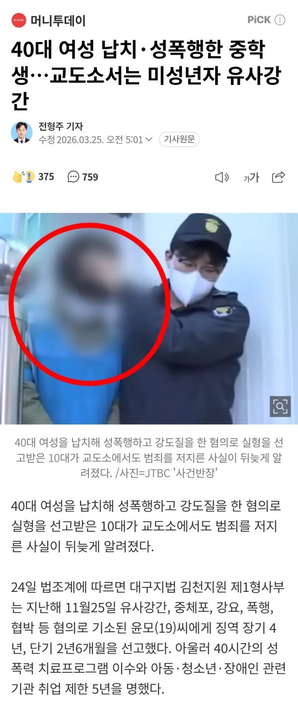 40대 여성 납치·성폭행한 중학생…교도소서는 미성년자 유사강간