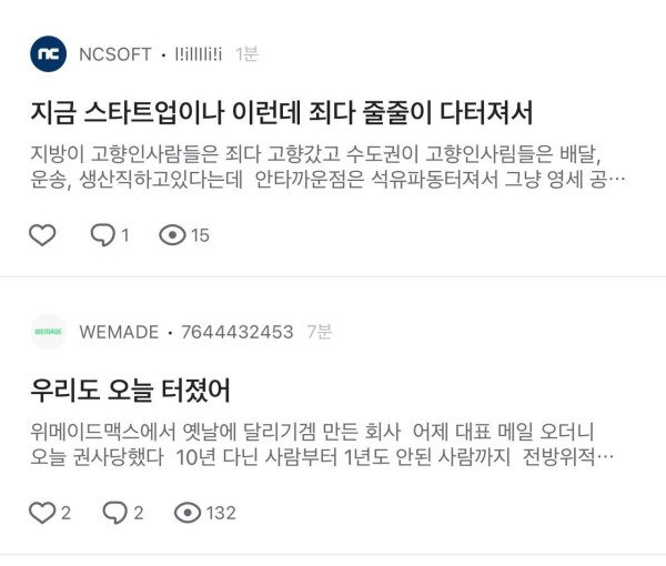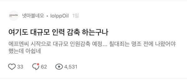 대기업들도 역대급 피바람 부는중인데 스비는 그나마 선방한거네