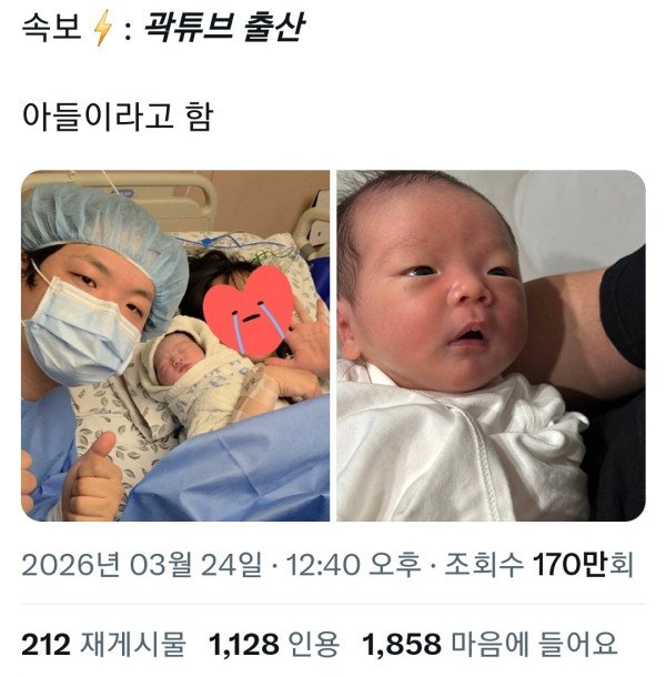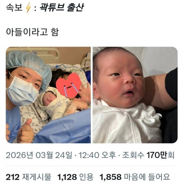 싱글벙글 곽튜브 득남...트위터 반응....JPG