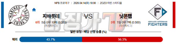 2026-04-14 NPB 지바롯데 니혼햄 KBO/NPB분석 무료중계 스포츠분석
