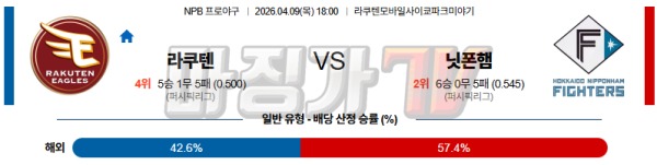 2026-04-09 NPB 라쿠텐 니혼햄 KBO/NPB분석 무료중계 스포츠분석