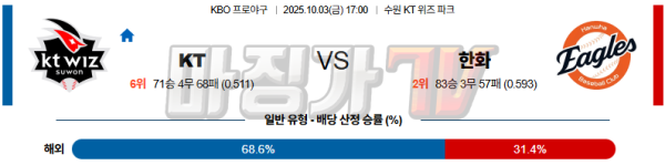 2025-10-03 KBO KT 한화 KBO/NPB분석 무료중계 스포츠분석