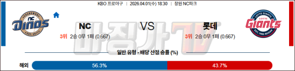 2026-04-01 KBO NC 롯데 KBO/NPB분석 무료중계 스포츠분석