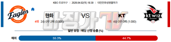 2026-04-02 KBO 한화 KT KBO/NPB분석 무료중계 스포츠분석