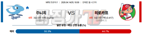 2026-04-14 NPB 주니치 히로시마 KBO/NPB분석 무료중계 스포츠분석