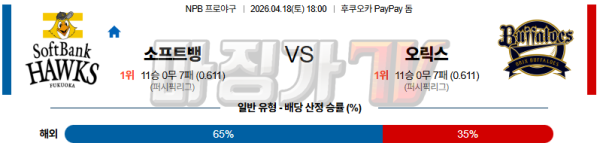 2026-04-18 NPB 소프트뱅크 오릭스 KBO/NPB분석 무료중계 스포츠분석