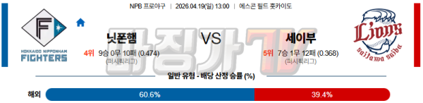2026-04-19 NPB 니혼햄 세이부 KBO/NPB분석 무료중계 스포츠분석