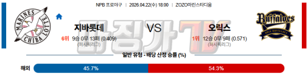2026-04-22 NPB 지바롯데 오릭스 KBO/NPB분석 무료중계 스포츠분석