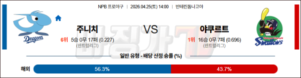 2026-04-25 NPB 주니치 야쿠르트 KBO/NPB분석 무료중계 스포츠분석