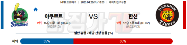 2026-04-28 NPB 야쿠르트 한신 KBO/NPB분석 무료중계 스포츠분석