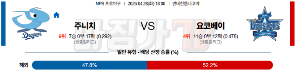 2026-04-28 NPB 주니치 요코하마 KBO/NPB분석 무료중계 스포츠분석