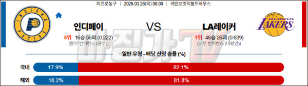 2026-03-26 NBA 인디애나 페이서스 LA 레이커스 NBA분석 무료중계 스포츠분석