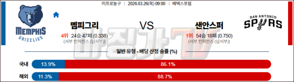 2026-03-26 NBA 멤피스 그리즐리즈 샌안토니오 스퍼스 NBA분석 무료중계 스포츠분석
