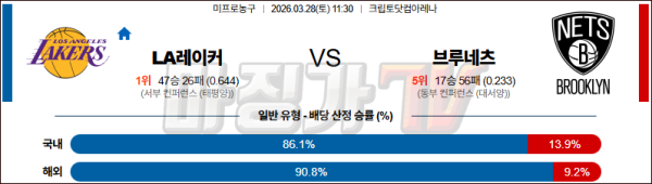 2026-03-28 NBA LA 레이커스 브루클린 네츠 NBA분석 무료중계 스포츠분석