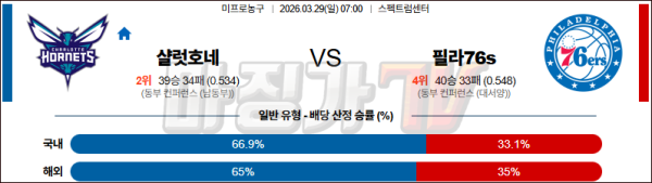 2026-03-29 NBA 샬럿 호네츠 필라델피아 76ERS NBA분석 무료중계 스포츠분석