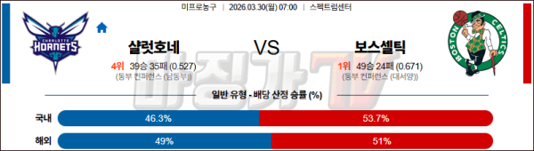 2026-03-30 NBA 샬럿 호네츠 보스턴 셀틱스 NBA분석 무료중계 스포츠분석