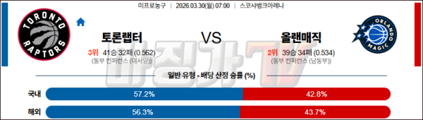 2026-03-30 NBA 토론토 랩터스 올랜도 매직 NBA분석 무료중계 스포츠분석