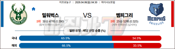 2026-04-06 NBA 밀워키 벅스 멤피스 그리즐리즈 NBA분석 무료중계 스포츠분석