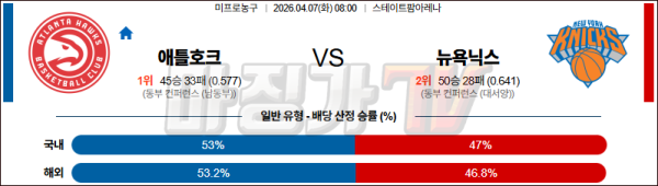 2026-04-07 NBA 애틀랜타 호크스 뉴욕 닉스 NBA분석 무료중계 스포츠분석