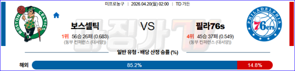 2026-04-20 NBA 보스턴 셀틱스 필라델피아 76ERS NBA분석 무료중계 스포츠분석