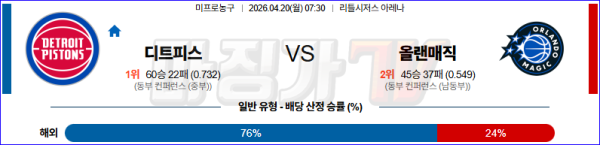 2026-04-20 NBA 디트로이트 피스톤스 올랜도 매직 NBA분석 무료중계 스포츠분석