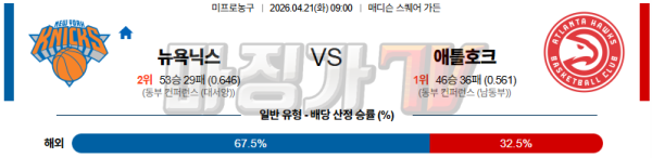 2026-04-21 NBA 뉴욕 닉스 애틀랜타 호크스 NBA분석 무료중계 스포츠분석