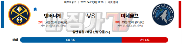 2026-04-21 NBA 덴버 너겟츠 미네소타 울브스 NBA분석 무료중계 스포츠분석