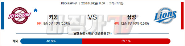 2026-04-26 KBO 키움 삼성 KBO/NPB분석 무료중계 스포츠분석