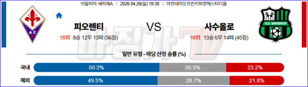2026-04-26 세리에 A ACF 피오렌티나 사수올로 해외축구분석 무료중계 스포츠분석
