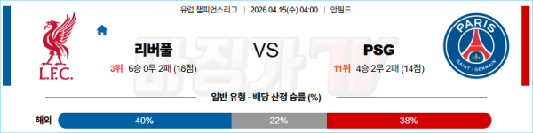 2026-04-15 UEFA 챔피언스리그 리버풀 FC 파리 생제르맹 해외축구분석 무료중계 스포츠분석
