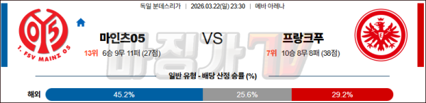 2026-03-22 분데스리가 마인츠 프랑크푸르트 해외축구분석 무료중계 스포츠분석