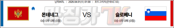 2026-04-01 국제친선경기 몬테네그로 슬로베니아 해외축구분석 무료중계 스포츠분석