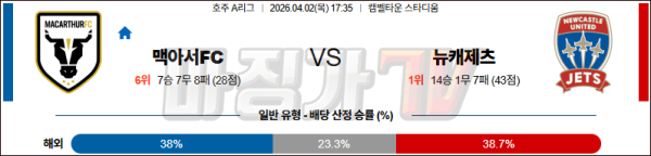 2026-04-02 호주 A리그 맥아서 FC 뉴캐슬 제츠 FC 해외축구분석 무료중계 스포츠분석